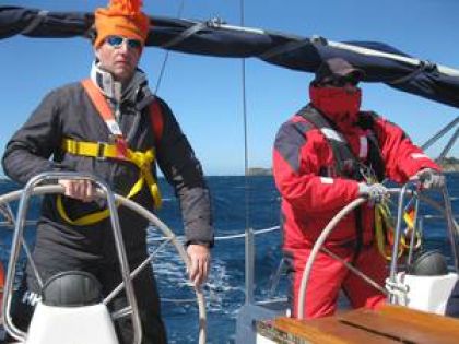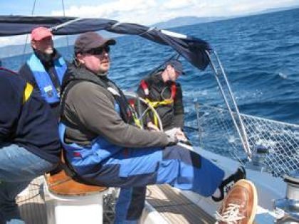 Beim bergen der Segel vor der Hafeneinfahrt zeigt der Wind uns noch einmal seine volle Kraft, als sich eine fliegende Genuaschot in einem am Mast hängenden Fallbunch verhakt und mit diesem verknotet – da hat ein Schotmann mal kurz nicht aufgepasst. Die hierdurch ausgelösten Reaktionen des Schiffs machen den frisch gebackenen SKSlern eindrucksvoll bewusst, welche Kräfte wirklich wirken. Nachdem alle Segel weg sind wollen wir unter Motor in den Hafen einfahren. An der Hafeneifahrt werden wir vom Hafenmeister gestoppt. Er will des Windes wegen mit seinem Schlauchboot dabei sein um bei Problemen eingreifen zu können. Wir sollen warten bis er eine andere Yacht an den Liegeplatz begleitet hat. Zuerst wollen wir dann tanken. Das anlegen an der Tankstelle klappt vorzüglich (Skipper ansagend und auf Stand-by-Position). Der dieses Manöver fahrende (neue) SKS-Schein-Inhaber meinte anschließend: „ich wusste gar nicht wie ich da ran kommen sollte“. Schnell erledigt war dann das ablegen von der „Tanke“ und dank genügend Fahrt das rückwärts anlegen mit dem Wind. Aus gutem Grund fuhr der Skipper dieses Manöver. Kurz danach: Alles fest! Alles gut gelaufen! Alle zufrieden!