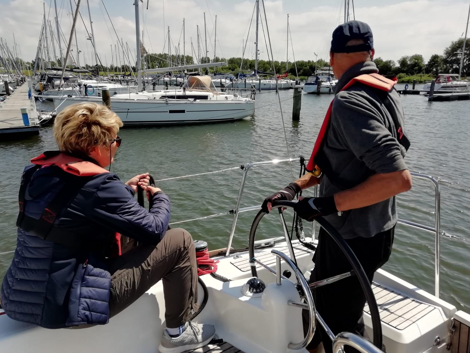 Mittags beruhigte sich das Wetter und wir setzten unseren Kurs in Richtung Lelystad zur Flevomarina.Die beiden folgenden Tage waren für Segelmanöver unweit der Marina reserviert. Und natürlich mit einer Vielzahl von „Boje über Bord-Manövern“. Die neue, dem Verein gehörende Boje, hat sich bestens bewährt – sie wurde von uns bestimmt zwanzigmal aus dem Wasser gefischt.