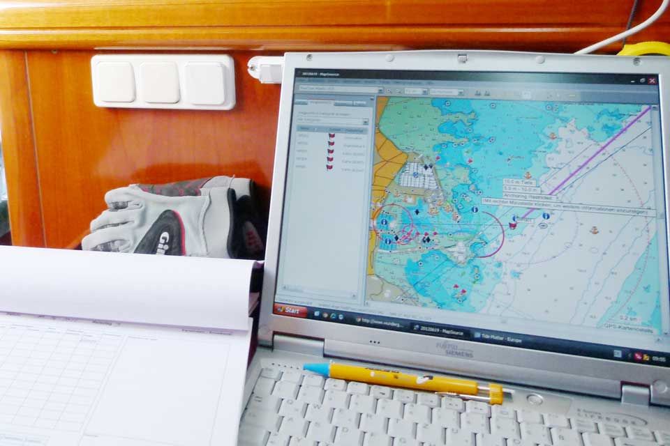 Die theoretische Prüfung findet anhand der Beantwortung eines Multiple-Choice Fragebogens sowie der Lösung einer Navigations-Kartenaufgaben mit mehreren Unterpunkten statt.