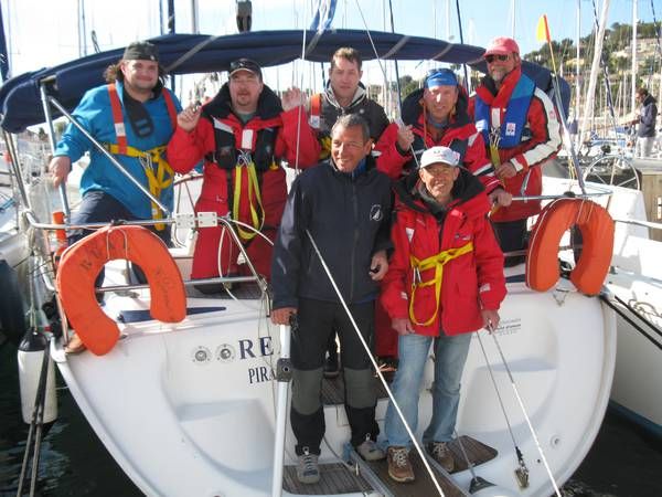 System 7, 8, 9, gilt noch immer, denn wir müssen zurück zum Ausgangshafen. Um 1700 h soll Boot am Chartersteg fest sein. Immer noch herrscht Mistral, also westlicher Wind. Nach dem ablegen und gleich außerhalb der Hafeneinfahrt wird Segel gesetzt. In der Bucht von Toulon sind die Verhältnisse noch moderat. Außerhalb der Landabdeckung haben wir den echten Wind mit zum Teil über 30 kn und eine 3 m Welle. Kein Problem bei unserem Raumschotkurs.