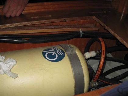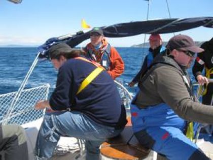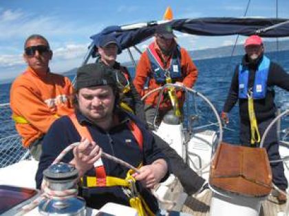 Beim bergen der Segel vor der Hafeneinfahrt zeigt der Wind uns noch einmal seine volle Kraft, als sich eine fliegende Genuaschot in einem am Mast hängenden Fallbunch verhakt und mit diesem verknotet – da hat ein Schotmann mal kurz nicht aufgepasst. Die hierdurch ausgelösten Reaktionen des Schiffs machen den frisch gebackenen SKSlern eindrucksvoll bewusst, welche Kräfte wirklich wirken. Nachdem alle Segel weg sind wollen wir unter Motor in den Hafen einfahren. An der Hafeneifahrt werden wir vom Hafenmeister gestoppt. Er will des Windes wegen mit seinem Schlauchboot dabei sein um bei Problemen eingreifen zu können. Wir sollen warten bis er eine andere Yacht an den Liegeplatz begleitet hat. Zuerst wollen wir dann tanken. Das anlegen an der Tankstelle klappt vorzüglich (Skipper ansagend und auf Stand-by-Position). Der dieses Manöver fahrende (neue) SKS-Schein-Inhaber meinte anschließend: „ich wusste gar nicht wie ich da ran kommen sollte“. Schnell erledigt war dann das ablegen von der „Tanke“ und dank genügend Fahrt das rückwärts anlegen mit dem Wind. Aus gutem Grund fuhr der Skipper dieses Manöver. Kurz danach: Alles fest! Alles gut gelaufen! Alle zufrieden!